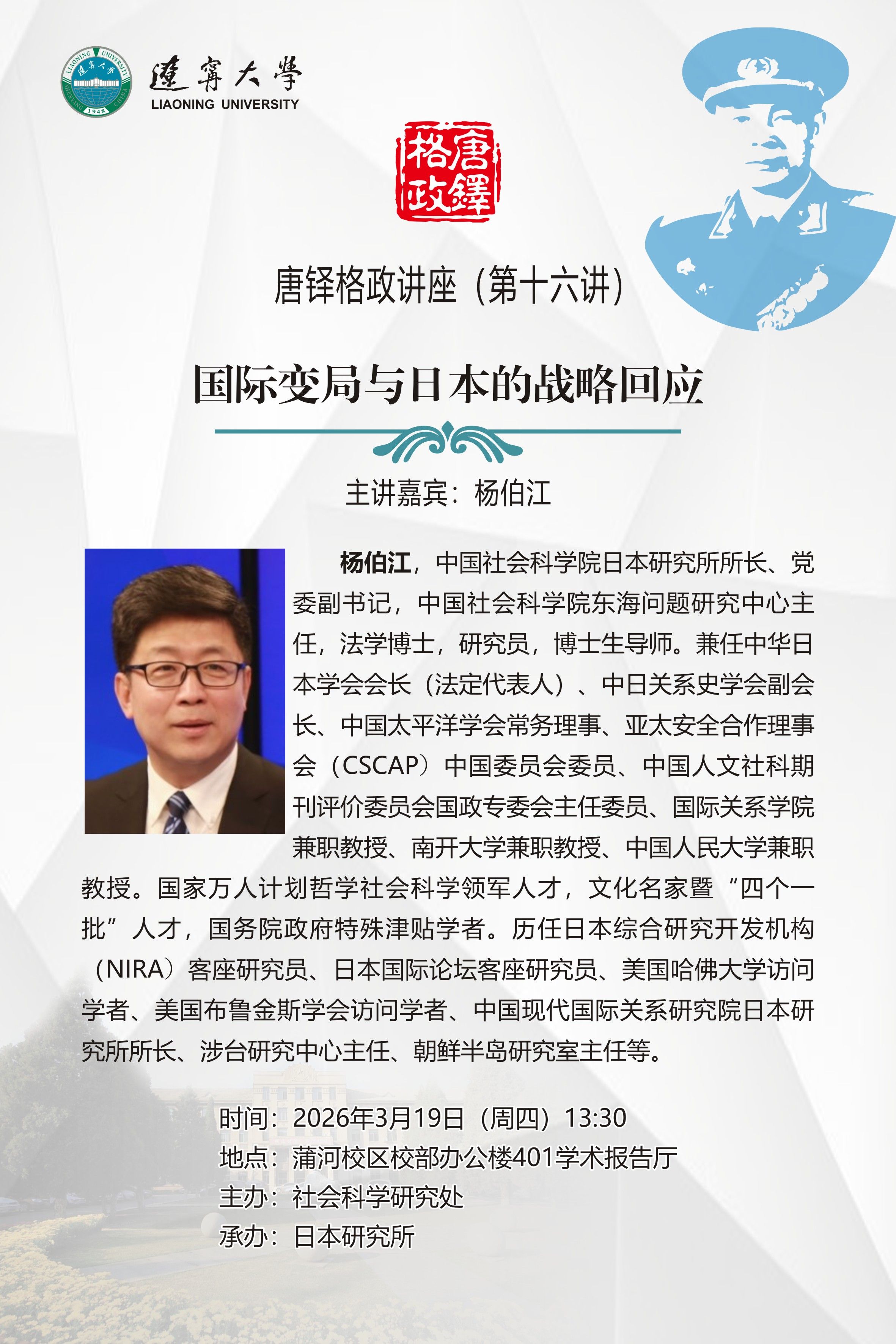辽宁大学特邀中国社科院日本研究所所长杨伯江研究员,深度解析国际格局变迁下的日本战略选择!